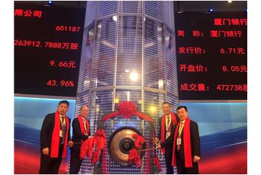 10月27日,大洲集團(tuán)參股企業(yè)——廈門(mén)銀行股份有限公司(股票代碼:601187)在上海證券交易所掛牌上市!集團(tuán)董事長(zhǎng)陳鐵銘先生應(yīng)邀蒞臨現(xiàn)場(chǎng)與眾股東代表一同敲響上市鑼音!